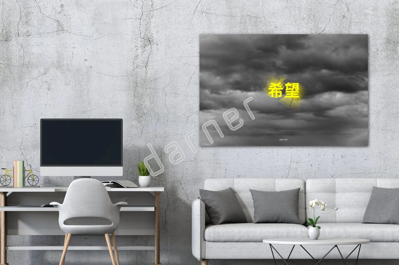 Cloud photography combined with the word “hope” written in Chinese. Reminding you that the sky is not the limit, but hope is.
